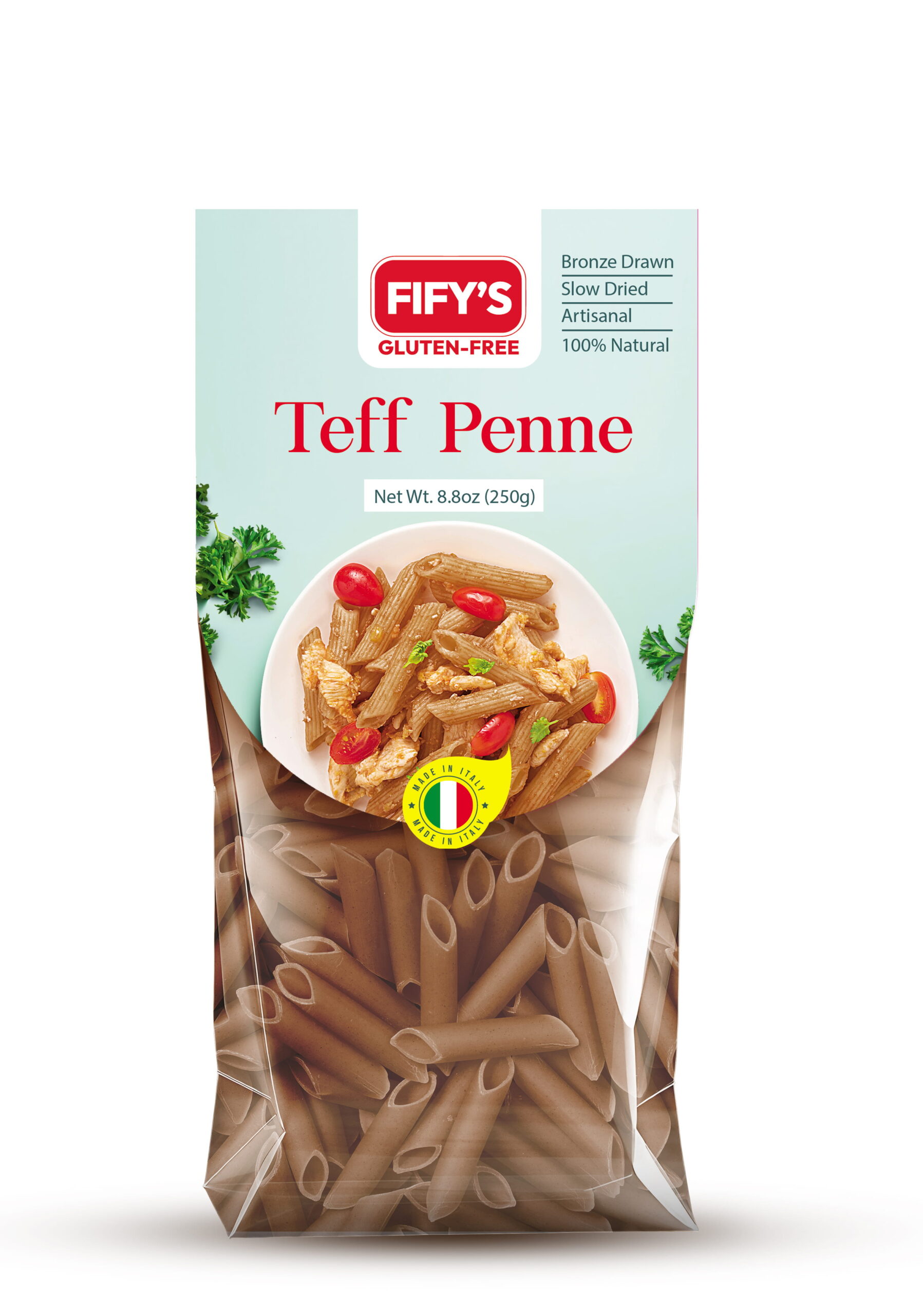 FIFY’S GLUTEN-FREE pasta is crafted in Italy using traditional artisanal methods that honor both heritage and health. Made with just two natural ingredients—nutrient-rich teff flour and rice flour—our pasta is bronze drawn for a rustic texture and slow dried to preserve its flavor and integrity.