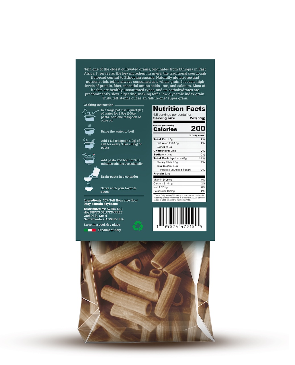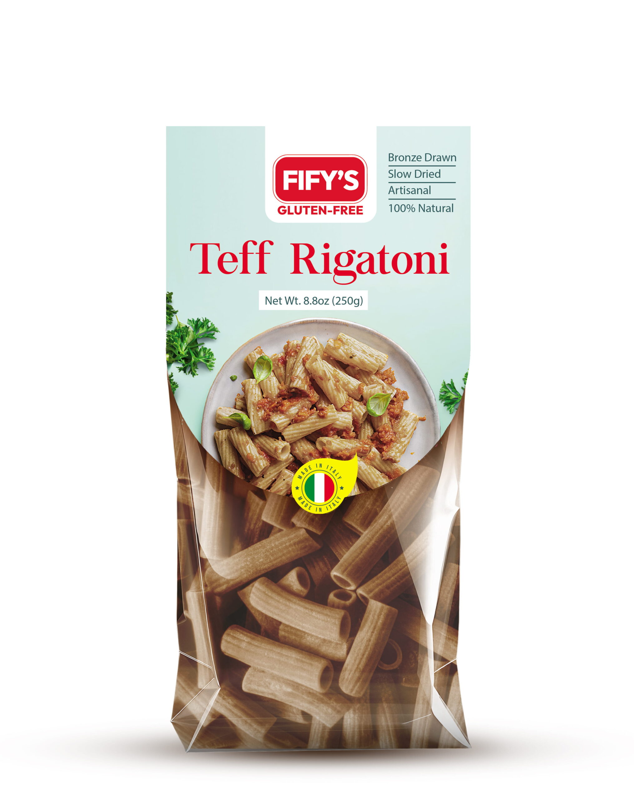 FIFY’S GLUTEN-FREE Teff Rigatoni pairs the bold, tubular shape of classic Italian pasta with the powerful nutrition of teff — one of the world’s oldest grains. Crafted in Italy using time-honored methods, our rigatoni is bronze drawn to create a textured surface and ridges that capture hearty sauces inside and out, then slow dried to preserve flavor and integrity.